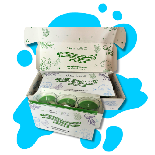 3 velas vegetales con olor a pino que proporciona bienestar.
